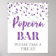 Panneau de la barre Popcorn pour baby shower, douche nuptiale, fête d'anniversaire ou mariage en violet foncé et confetti motif. Veuillez noter que l'effet de parties scintillant n'est que photographique.