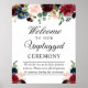 Ajoutez une touche d'élégance à votre cérémonie de mariage avec ce panneau de cérémonie de Mariage débranché floral de la marine bourguignonne. Cette enseigne unique allie harmonieusement des motifs floraux bordeaux et navals, ajoutant une touche de charme vintage à votre journée spéciale. Que vous ayez un mariage traditionnel ou moderne, ce panneau est une excellente façon de rappeler à vos invités d'être présents et de profiter de la cérémonie.