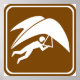Signal routier et routier de style international qui conseille les installations récréatives, en particulier : le deltaplane.