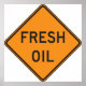 Un panneau routier qui dit de l'huile fraîche sur un arrière - plan orange. Ce design semble vraiment efficace sur ces Poster