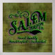 Salem Broom Company signe en noir, vert et violet et présente un arrière - plan à motifs vert gothique.