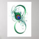 Le symbole de l'infinity with a bright, green, artistic peacock feather on a white background. Tattoo style.