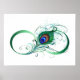 Le symbole de l'infinity with a bright, green, artistic peacock feather on a white background. Tattoo style.
