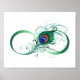Le symbole de l'infinity with a bright, green, artistic peacock feather on a white background. Tattoo style.