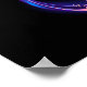 Glowing, purple infinity symbole with flying, luminous, blue hummingbird on black background. Néon.