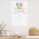 Une affiche amusante à avoir à votre soirée de révélation de genre! Illustration de crème glacée à l'aquarelle en bleu et rose qui dit "Garçon ou Fille" en haut demandant aux invités de voter sur ce qu'ils pensent que le sexe du bébé va être. Les clients peuvent voter pour le team boy ou team girl. Une activité ludique à faire à votre fête.