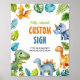Ce panneau d'anniversaire personnalisable en dinosaure est un moyen amusant et facile d'ajouter une touche personnelle à la fête de votre enfant. La conception est entièrement personnalisable, vous pouvez ainsi ajouter n'importe quel texte, nom, âge ou toute autre information pertinente de votre choix. Vous pouvez également créer de multiples panneaux pour différentes zones de votre fête et c'est une excellente façon de rendre la célébration plus spéciale et unique.