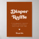 Panneau baby shower du jeu de raffle de couche. Un thème rétro chic : adoptez ce design typographique vintage et élégant pour votre papeterie Baby shower, avec un thème couleur orange brûlé. Facile à mélanger avec notre papeterie similaire disponible en rose pêche, en terre cuite et en sucre brun. Couleurs et arrière - plans de texte entièrement personnalisables.