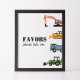 Invitations invités d'anniversaire à prendre une faveur avec cette enseigne thématique de construction.