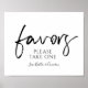 Signe Mariage de calligraphie de script de ville - Favors (noir et blanc) : Ce panneau mariage de script moderne est parfait pour afficher à votre table d'affichage de faveur de mariage. Le design est en noir, mais vous pouvez changer de couleur à tout ce que vous voulez! **COMMENT CHOISIR VOTRE PROPRE COULEUR : 1) Cliquez sur le bouton "Customiser" ou "Personnaliser" ou "Modifier". 2) Choisissez une nouvelle couleur arrière - plan.