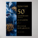 Cet élégant panneau d'accueil 50ème anniversaire de mariage bleu floral noir et or peut être personnalisé avec vos informations dans la typographie moderne. Conçu par Thisisnotme©