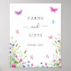Un élégant panneau de baby shower de cartes et cadeaux orné d'un joli jardin de fleurs sauvages orné de papillons bleus, roses et violets. Parfait pour les baby showers sans sexe, garçons ou filles. Personnalisez-les avec vos détails et utilisez l'outil d'édition pour effectuer d'autres ajustements tels que la taille de police, le placement ou la couleur.