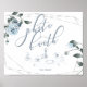 Dusty Blue Floral pour correspondre à votre thème mariage, Guidez tout le monde à la photo Booth pour de superbes photos de l'événement! Roses, feuilles et baies d'aquarelle dans un bleu poussiéreux moderne entourent un cadre géométrique de terrarium argenté avec de la végétation sauge. Personnaliser texte, style de police, couleur et taille. OEuvre originale créée pour BarefootBride™ par © WhimsicalArtwork™ - Il s'agit d'une suite de papier à lettres Mariage complète avec papier à lettres mariage, baby shower et autres articles de papeterie d'événements correspondants.