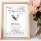 L'agréable enseigne de boisson signature pour chien Bulldog à la française présente une belle conception florale pour animal de compagnie dans un style aquarelle - parfait pour un mariage saturé de tons neutres. C'est une façon attrayante de mettre l'accent sur la table de cocktail, de nourriture ou de dessert de votre événement ! Personnalisez le panneau du bar mariage avec le nom de l'animal et les détails de la boisson.