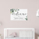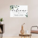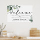 Moderne simple et élégant avec calligraphie "bienvenue" et signe mariage de feuillage d'eucalyptus.