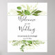 Faites savoir à vos invités qu'ils sont au bon endroit ! Ce panneau mariage correspond à la suite Mariage Wildwoods Botanical. Botaniques luxuriantes d'herbes de campagne, d'eucalyptus et de fougères en vert et blanc. Ajoutez les mots "Bienvenue à notre Mariage" avec votre nom et votre date. Les polices sont un mélange de calligraphie manuscrite et moderne.