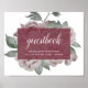Conçu pour correspondre à notre collection de mariages du jardin anglais à Marsala, cet élégant panneau fleuri invitations invités mariages pour signer votre livre d'or. Personnalisez avec deux lignes de texte personnalisé dans le script de calligraphie et le lettrage serif traditionnel (montré avec "Guestbook; veuillez laisser vos souhaits pour le nouveau Mr et Mme. [nom]"), superposé sur un élément de marsala bordeaux pur, avec des fleurs de pivoine rose vif et vert sauge qui s'égrènent.