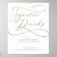 Ce panneau signature calligraphie or romantique est parfait pour un mariage simple. Le design classique moderne comprend des tourbillons fantaisistes et des fleurs fantaisistes avec une magnifique typographie de feuille d'or en faux champagne. Remarque : Ce design ne comporte pas de véritable feuille d'or. C'est un graphisme de haute qualité fait pour ressembler à du papier doré.
