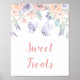 Belle papillon fille baby shower douceurs douceurs affiche. Ce design présente des fleurs d'aquarelle rose et lavande pourpre et des illustrations de papillons.