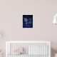 Poster représentant le symbole de Taurus en bleu argenté doux, recouvert des étoiles de la constellation, contre un arrière - plan étoilé en bleu nuit profond à noir.