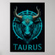 Affiche Symbole Taurus Zodiaque En Acce Bleu et Or Vibrant
