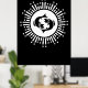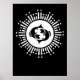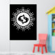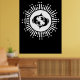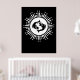 Ce design noir et blanc audacieux est orné du symbole zodiaque de Pisces avec deux poissons en miroir au centre, entouré d'un motif radieux de starburst. La disposition circulaire est agrémentée de lignes rayonnantes et d'étoiles scintillantes, créant un effet céleste frappant. Son contraste épuré et son thème cosmique captent une ambiance mystique et moderne, parfaite pour les amateurs d'astrologie comme pour les rêveurs.
