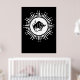 Ce design noir et blanc saisissant présente un taureau audacieux au centre, représentant le puissant signe zodiaque du Taurus. Entourée de poutres rayonnantes et d'étoiles dispersées, la composition circulaire crée une atmosphère céleste et mystique. Le contraste saisissant et la pose dynamique du taureau mettent en évidence les traits de force, de détermination et d'énergie au sol du Taurus, ce qui en fait un design attrayant pour les amateurs d'astrologie.