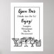 Panneau Open Bar noir et blanc pour votre réception de mariage. Ajoutez un peu d'humour à la réception ! Les shenanigans peuvent être documentés.