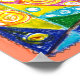 Des motifs géométriques vibrants remplissent l'image, avec des cercles, des triangles et des tourbillons dans un kaléidoscope de couleurs, dont le bleu, le vert, le jaune et le rouge. Le design complexe crée un sentiment de symétrie et d'équilibre.