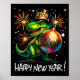 Affiche T Rex Happy New Year 2026 Disco Ball Fireworks Tee