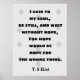 J'ai dit à mon âme, sois calme, et attends sans espoir, Car l'espoir serait l'espoir pour la mauvaise chose. **T.S.Eliot citation : ***