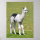 Jeune alpaga blanc et noir (Vicugna pacos) debout sur l'herbe