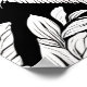 Poster dans un portrait noir et blanc d'un chat tabby aux grands yeux, dans un jardin entouré de fleurs et de feuillage.