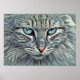 Gros plan d'un chat Tabby gris aux yeux bleus vibrants.