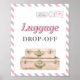 Panneau de table de cadeaux de "dépôt de bagages" qui peut être utilisé pour une baby shower, une sprinkle, un anniversaire ou une autre occasion sur le thème du voyage/avion. Cette conception sera mieux visible en 8" x 10" ou 16" x 20". Si vous recherchez une autre taille, veuillez nous contacter pour l'adapter correctement.