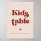 Panneau mariage de table pour enfants. Un thème rétro chic : adoptez ce design typographique vintage et élégant pour votre papeterie mariage, avec un thème de couleur rose pêche. Facile à mélanger avec notre papeterie similaire disponible en orange brûlé, terre cuite et sucre brun. Couleurs et arrière - plans de texte entièrement personnalisables.