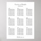 Un tableau de sièges en noir et blanc dans une jolie police de caractères de script cursive. C'est pour neuf tables de huit personnes chacune. Chaque liste de table est alignée à gauche pour la garder plus nette. Vous pouvez changer cela lorsque vous customisez. Si vous voulez modifier les couleurs, cliquez sur "customiser", puis cliquez sur le texte que vous voulez modifier. Les couleurs de police sont sous le tableau. La couleur arrière - plan sera en bas à droite.