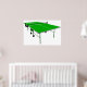 Une table de ping-pong verte et prête à jouer. Ce design semble vraiment efficace sur cette affiche