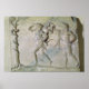 La tablette grecque représentant Hercules transportant le trépied Delphique devant Apollo au Louvre, Paris, France.