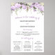 Combinez votre panneau de bienvenue de mariage et votre programme de mariage dans ce design. Des fleurs de rose violette élégantes nichées dans le feuillage vert créent une belle bordure supérieure. Tout le texte est modifiable afin que vous puissiez décrire votre cérémonie de mariage unique. Vous pouvez également changer la police, la taille et la couleur.