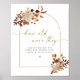 Cet ancien signe de jeu de douche nuptiale comprend une arche bohème, des fleurs de couleur terre aquarelle et une police de script manuscrite élégante avec une couleur d'accent en terre cuite amusante. Cette affiche est l'ajout parfait à votre fête du saumon ou de l'automne.
