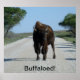 Un buffle trône fièrement au milieu de la route, osant passer.