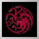 Jeu de Trones | Sigil for House Targaryen avec trois dragons formant un cercle et la devise : "Feu et Sang".