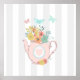Affiche Teapot rose avec Fleurs et Papillons Gris Gris