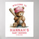Welcome your guests in style with this adorable girl baby shower welcome sign, featuring a sweet pink baseball teddy bear design. Perfect for a Little Slugger or sports-themed baby shower, this sign creates a warm and memorable first impression as guests arrive.