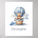 Affiche Teddy Bear Nursery Hot Air Balloon Blue Baby Boy