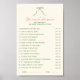 Cette feuille de jeu de douche nuptiale "il a dit qu'elle a dit" comporte un arc vert fantaisiste dessiné à la main et une police manuscrite en rose et vert charbon.