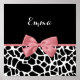 Une affiche tendance en girafe noir et blanc avec un ruban rose girly attaché dans un joli arc. Personnalisez cet élégant design poster de animal en ajoutant votre nom. Image imprimée plate, pas l'arc réel.