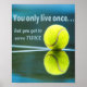 Vous ne vivez qu'une fois. . . mais vous pouvez servir TWICE Tennis ball assis sur un court de tennis. Parfait pour le joueur de tennis de votre vie.