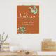 Bienvenue à vos invités dans le style avec cette affiche de mariage bohème rustique et élégante, avec un design d'automne moderne en terre cuite orange brûlée. Orné d'accents dorés, de verdure d'eucalyptus aquarelle et d'un script de calligraphie simple et raffiné, il donne le ton de votre journée spéciale avec un mélange de charme botanique et de chaleur sophistiquée.